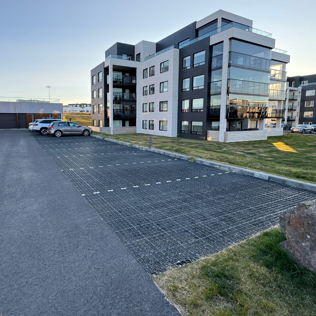 Jarðvegsgrind fyrir steinhellur. Hentar fyrir göngustíga, bílastæði, innkeyrslur o.fl.