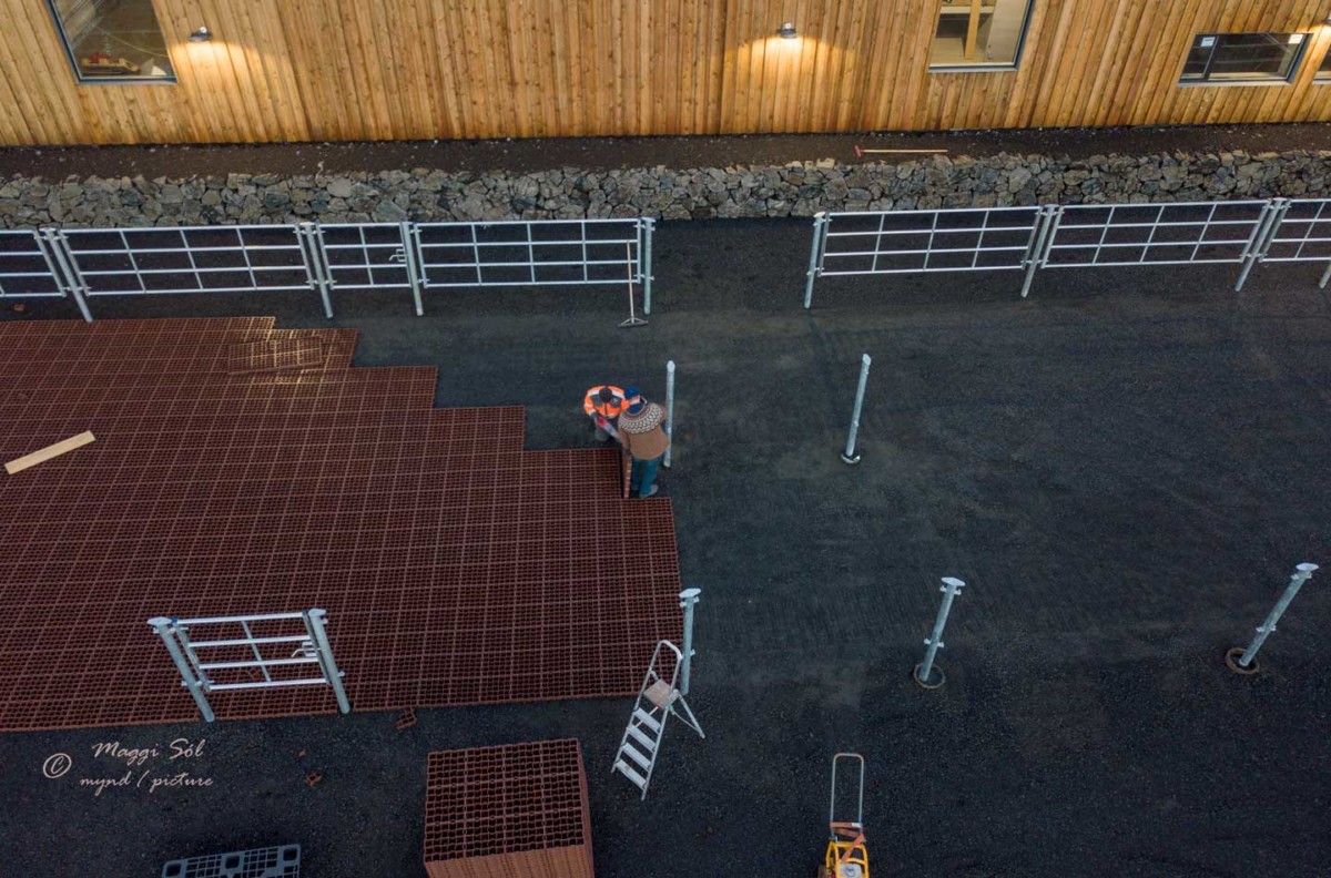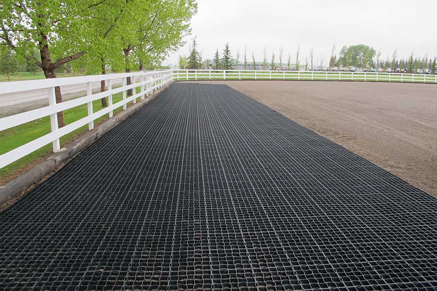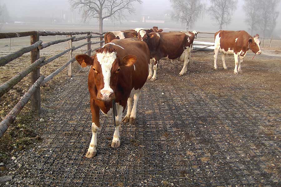 Ecoraster er fullkomin lausn fyrir landbúnaðinn, hvort sem um ræðir inni eða útisvæði fyrir dýr, stíga, vegi eða aðgengi að hlöðum og húsum. Reynslan sýnir að grindurnar bæta líðan húsdýra, draga úr slysum og minnka líkur á sjúkdómum. Þær veita stöðugt og endingargott yfirborð sem dregur úr holum, drullu og skemmdum í jarðvegi, á sama tíma og vatn rennur auðveldlega niður í jarðveginn. Þetta gerir svæðin bæði öruggari og þægilegri fyrir hesta, kýr, kindur og önnur húsdýr, sem geta gengið á traustum jarðvegi án þess að renna til eða festast.