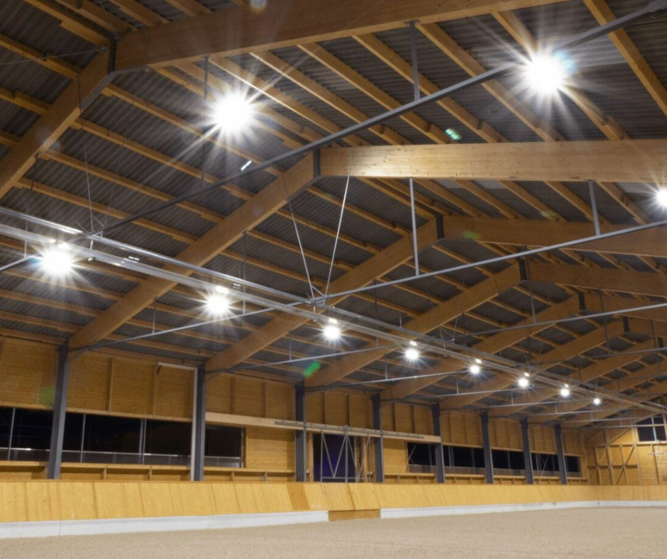 BUCHHOLZ býður upp á háþróaða LED-lýsingu sem umbreytir stórum rýmum í björt, örugg og áreiðanleg umhverfi. Ljósin eru sérstaklega hönnuð fyrir reiðhallir, íþróttasvæði og önnur stór svæði þar sem gæði og nákvæm lýsing skiptir öllu máli. Með hámarks orkunýtingu, langan líftíma og lágmarks viðhald skila BUCHHOLZ LED-lýsingar bæði sparnaði og þægindum. Ljósin dreifa birtunni jafnt yfir allan flötinn, tryggja öryggi fyrir fólk og dýr.